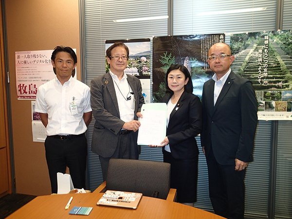 令和6年度国政に関する要望を実施 2023-08-04 神奈川県町村会は、令和5年8月4日(金)に、県内選出国会議員に令和6年度の国政要望を実施しました。 要望活動日令和5年8月4日(金) 16:30~参加役員湯川裕司会長、山梨崇仁副会長、本山博幸政務担当役員 令和6年度国政に関する要望書(PDF) 牧島かれん衆議院議員に要望書を手渡す湯川会長(左から2番目)